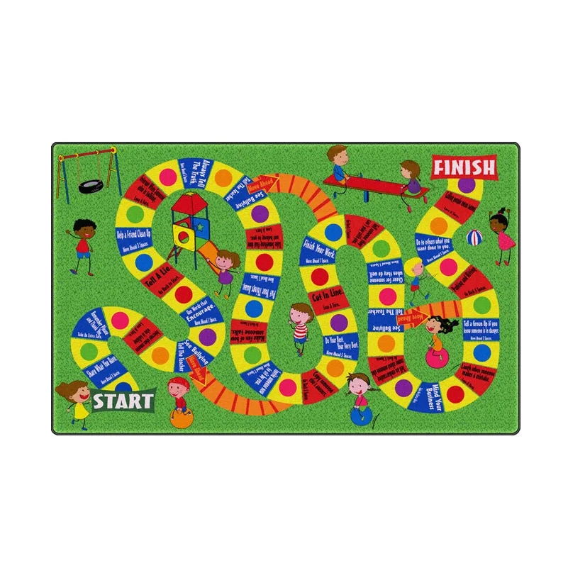 Game rugs often include interactive paths, themed graphics, or playful layouts that invite children to move, jump, and engage physically. Many designs also blend musical notes, instruments, or creative art elements to inspire imagination during active play. The durable surface supports frequent classroom use while keeping activities visually organized.