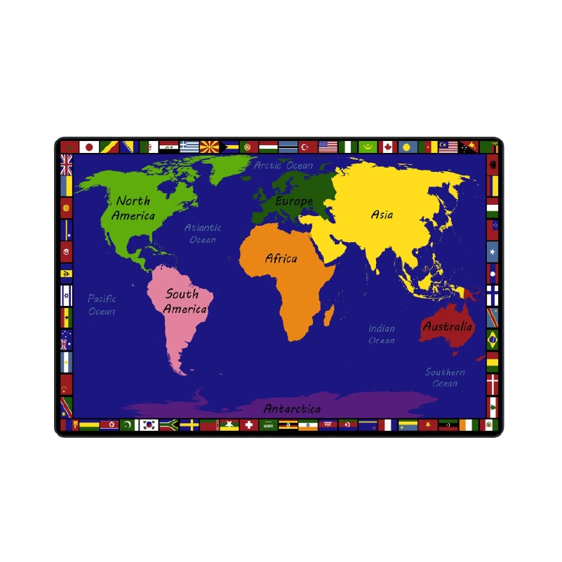 A well-designed rug can support learning through themes such as letters, numbers, shapes, or maps. Clear and engaging visuals help create a warm, interactive, and visually appealing classroom.