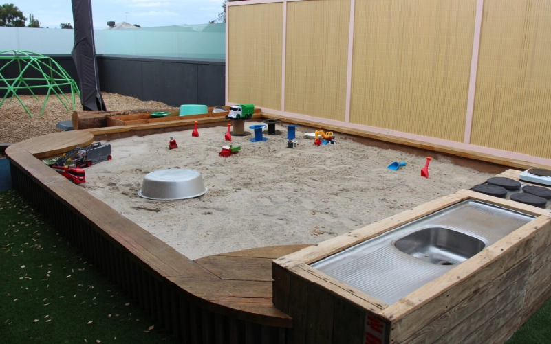 Outdoor environments make it easier to offer open-ended, messy play that would be difficult to manage indoors. Sand and water activities encourage experimentation, problem-solving, and cooperative play while allowing children to explore textures and cause-and-effect naturally.
