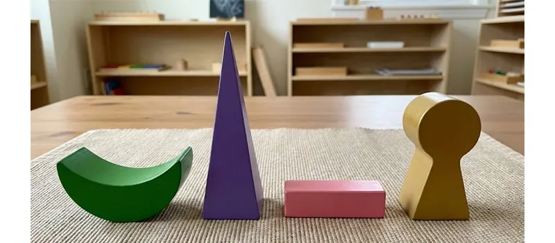 The primary difference is the dimension and the stage of learning. Grammar solids are three-dimensional wooden objects used for the initial introduction to parts of speech. Their weight and shape provide a sensory experience for young children. The Montessori grammar symbols are flat, two-dimensional shapes made of paper or plastic. Students use these flat symbols for abstract work, such as analyzing sentences on paper, once they have understood the basic concepts.