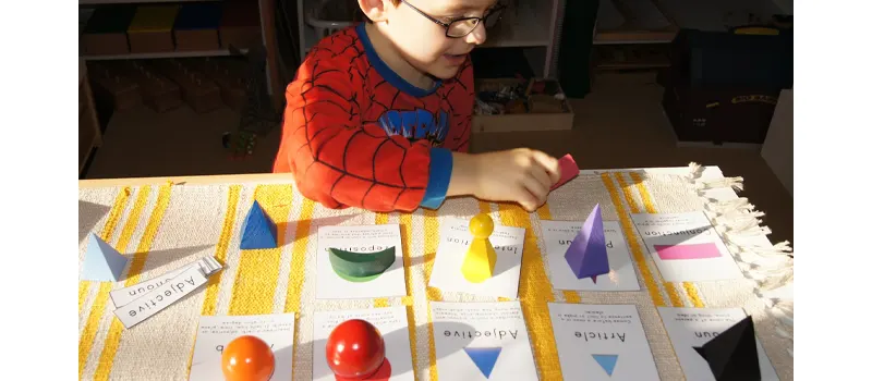 Not at all. In the Montessori approach, children learn grammar concepts through experience. They work with the symbols first and gradually learn the terminology in context as their understanding deepens.