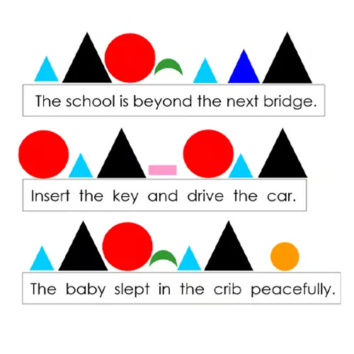 As the learner masters nouns and verbs, the guide gradually introduces the remaining shapes. Articles, adjectives, and prepositions are added to the mix. The child learns to visualize how an adjective helps a noun or how a preposition links words together. This method allows students to deconstruct long and complicated sentences with ease.