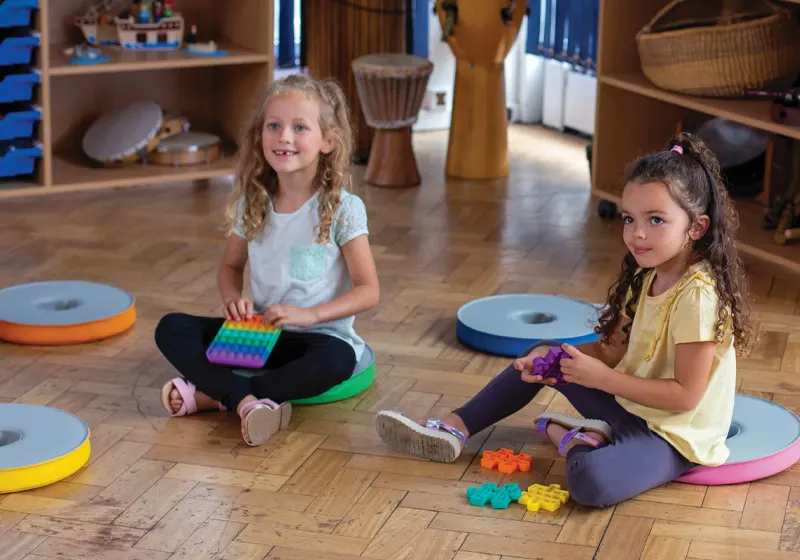 Preschool children are still developing core strength, balance, and postural control. Long periods of rigid sitting can lead to restlessness. Seating options that allow gentle motion, floor positioning, or varied posture help children engage their muscles while participating in learning activities.