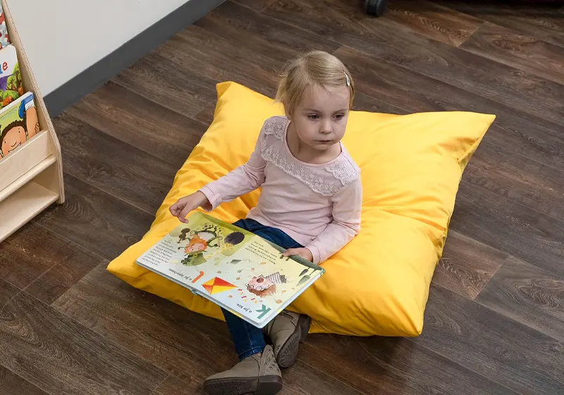 Flexible seating in early learning environments must meet commercial safety standards. Look for rounded edges, non-slip bases, reinforced stitching, non-toxic finishes, and durable construction that withstands daily use. Commercial-grade materials are especially important for high-traffic classrooms.