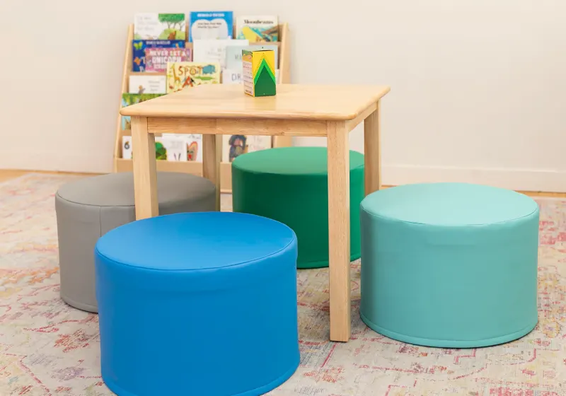 Soft Ottomans are low, cushioned seats with a firm internal structure that allows children to sit upright while still feeling relaxed. If your goal is to keep the room visually open, encourage independence, and allow seating to change as quickly as the activity does, Soft Ottomans offer that balance between comfort and control.