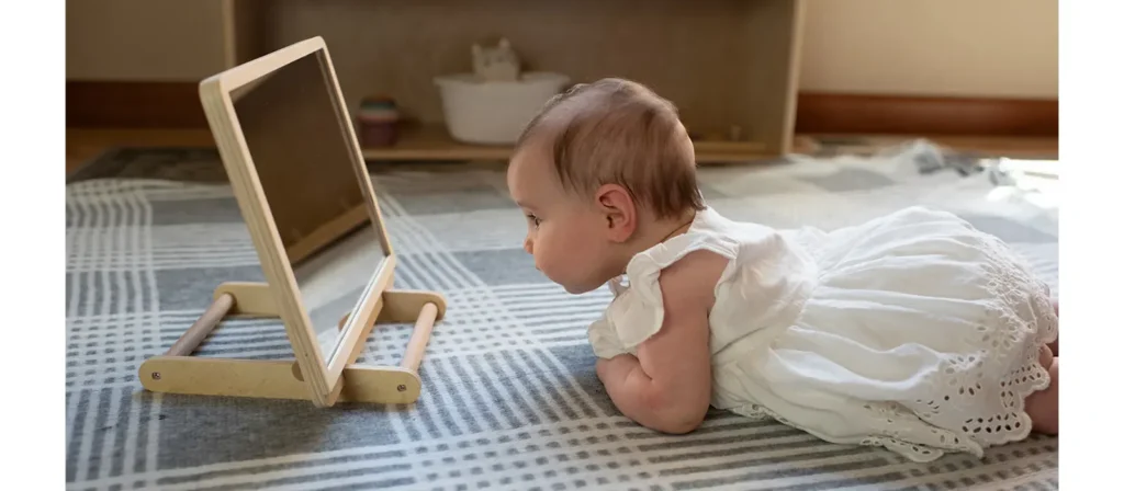 Mirror play develops gradually as children move from simple visual exploration to true self-recognition. Each stage reflects a new level of understanding, coordination, and awareness. Although individual progress may vary, most children follow a general sequence as they interact with their reflections.