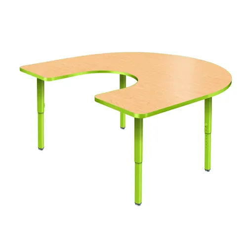 - The Power of Curved Tables: Replace individual desks with kidney-shaped (horseshoe) or round tables. These shapes naturally orient children toward one another, making conversation inevitable and comfortable.