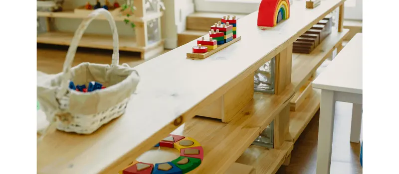Flexible, child-accessible furniture makes the biggest difference. Group tables encourage collaboration, light tables and science tables support inquiry, open shelving builds responsibility, and soft seating areas promote communication and reflection.