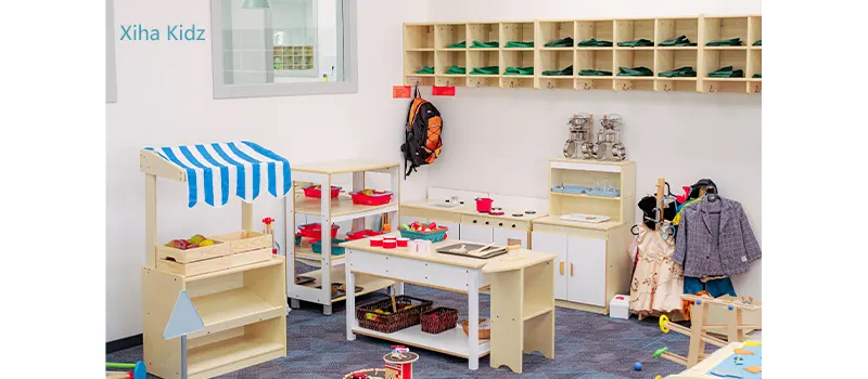 Role-play areas with simple props, costumes, and small-scale furniture support imaginative thinking and narrative development. These spaces allow children to explore real-world roles and create original storylines.