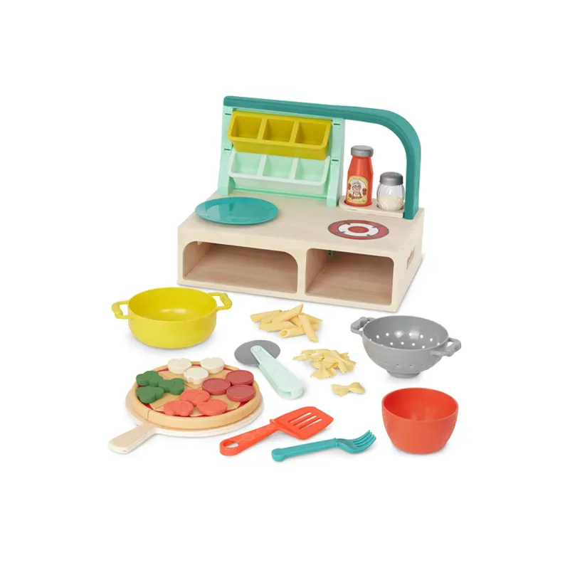 A classic pretend kitchen assortment with cookware, utensils, and realistic food pieces for cooking, serving, and “restaurant” play. Many options include sturdy wood sets with smooth finishes or wipe-clean plastic pieces that hold up to daily handling.