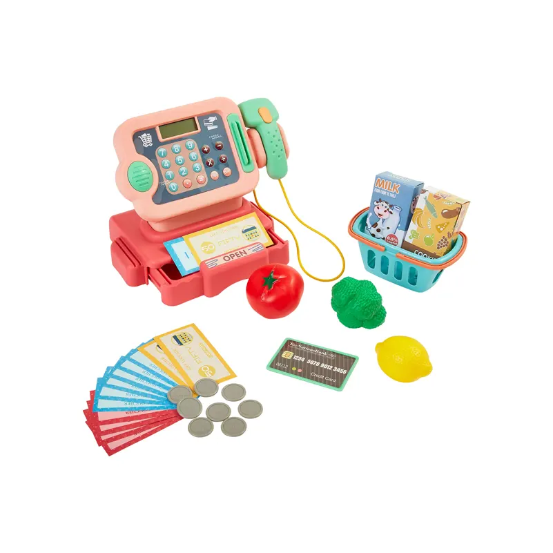 Everything children need to run a mini market, from play groceries and baskets to registers, scales, and pretend money. Pieces are made to be easy to sort, store, and reuse, with durable parts that stay functional even with frequent button pushing and repeated play.